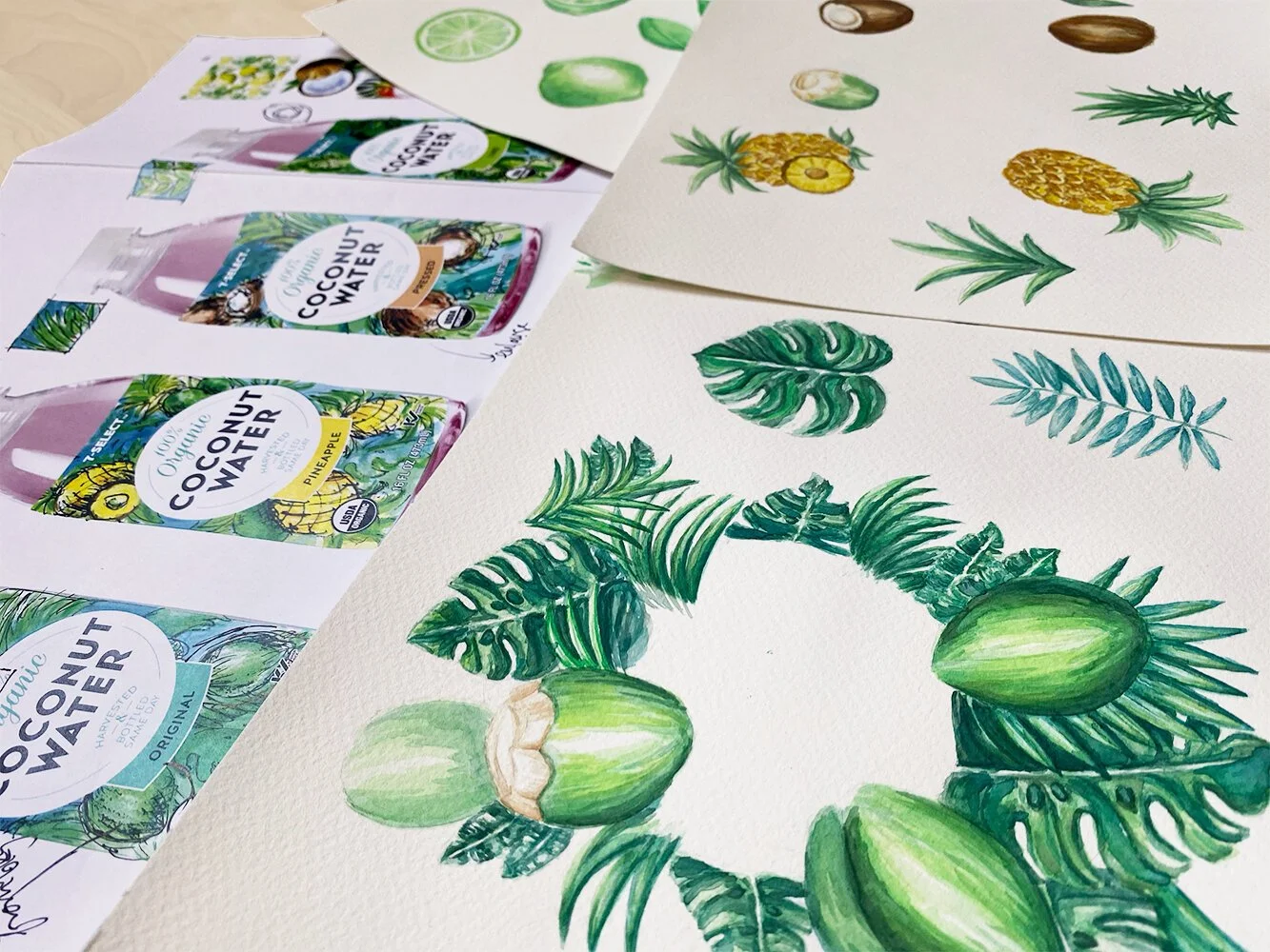 7-Eleven Coconut Water | Design + Watercolor Illustrations